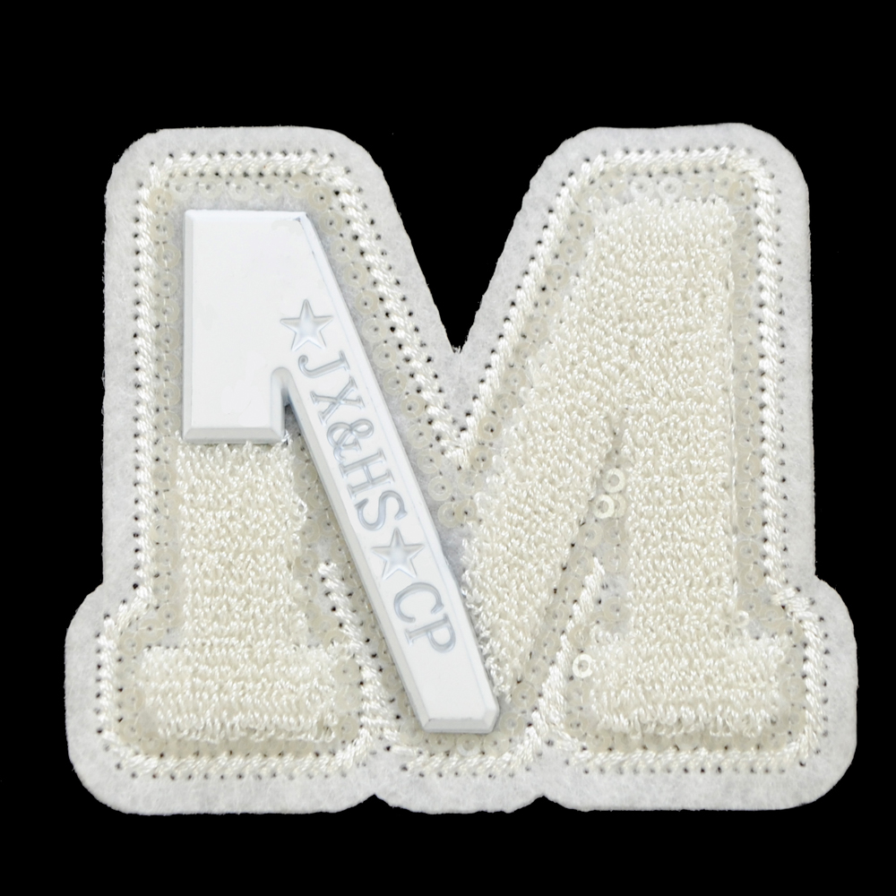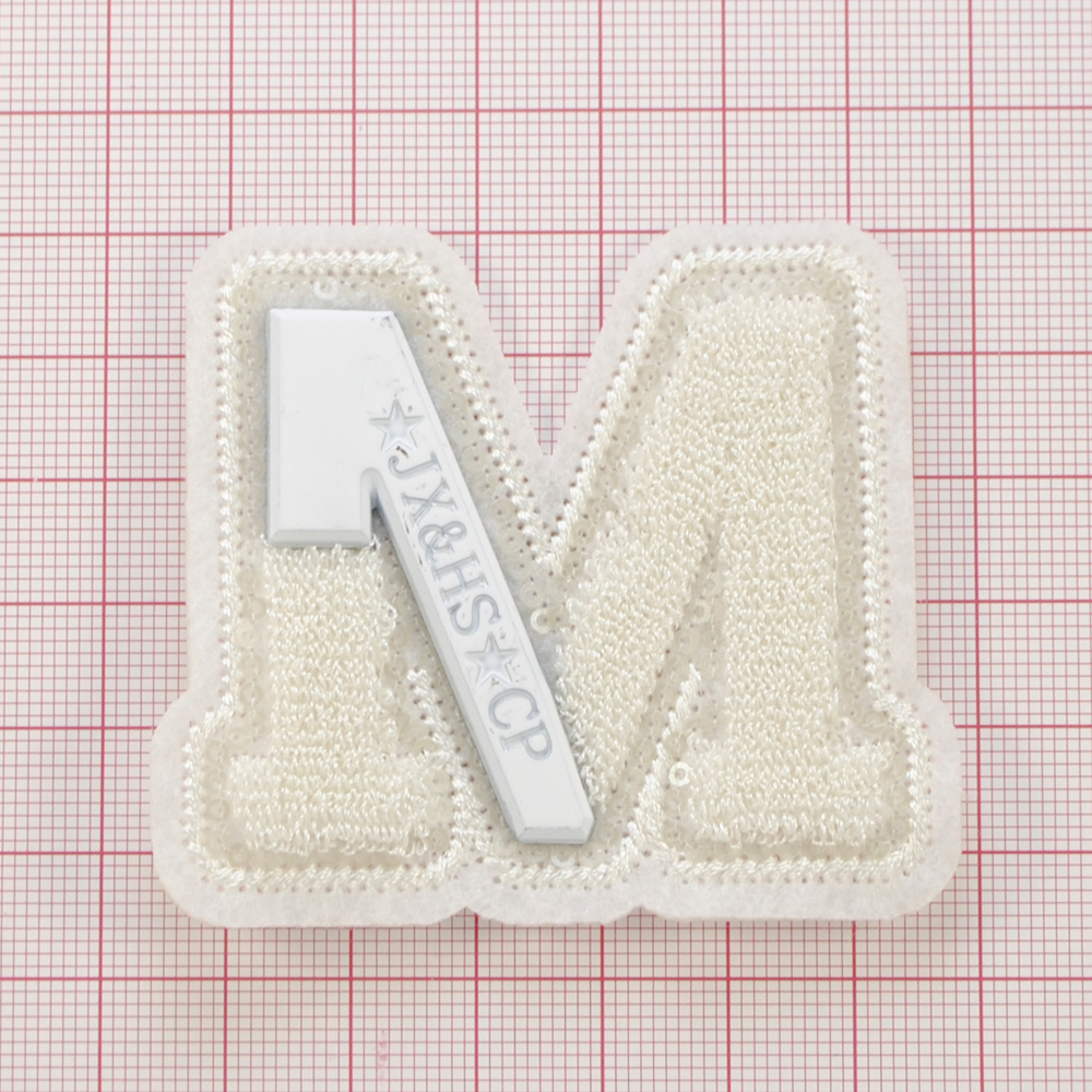 Нашивка махровая M с метал вставкой,6,4*5,5см, белый, шт