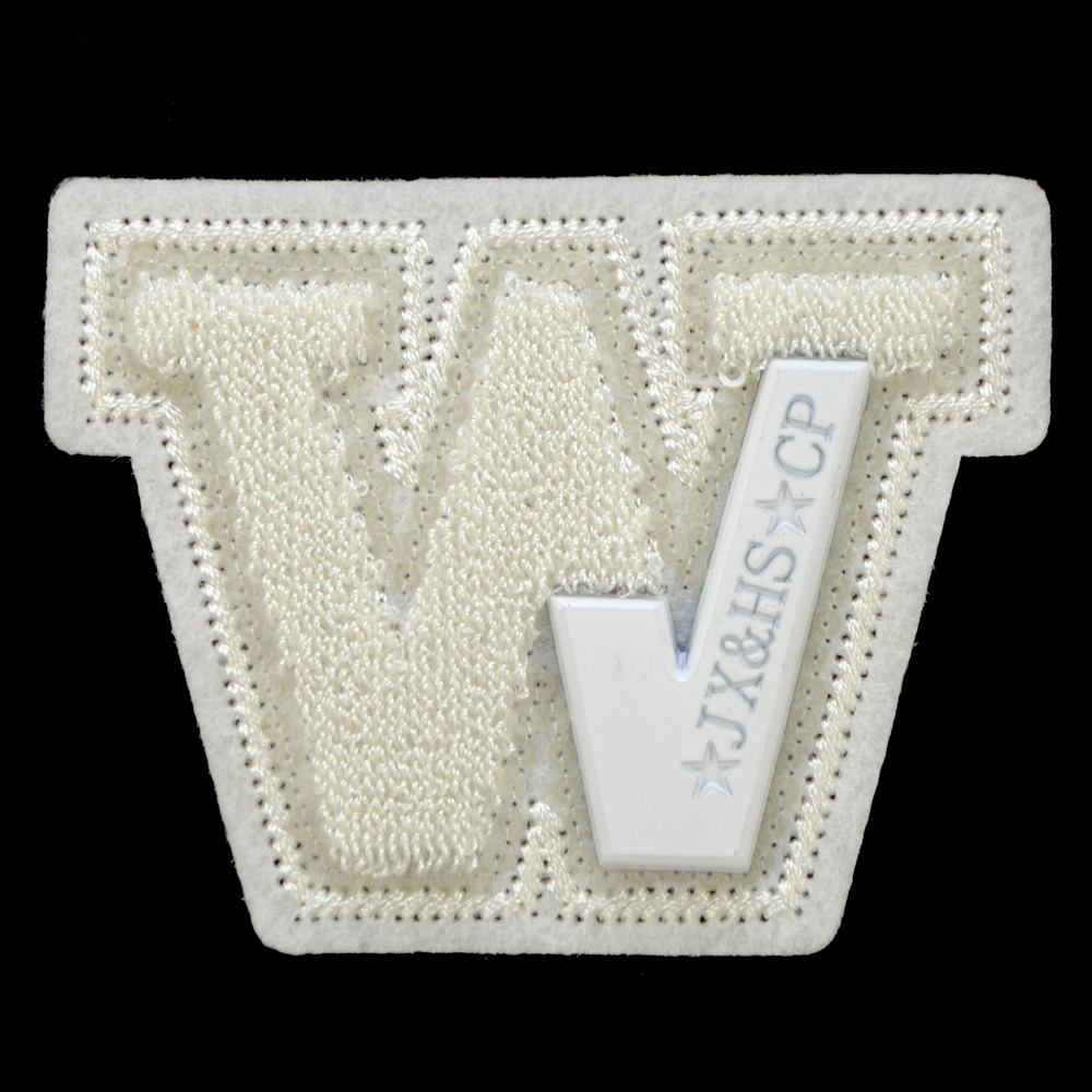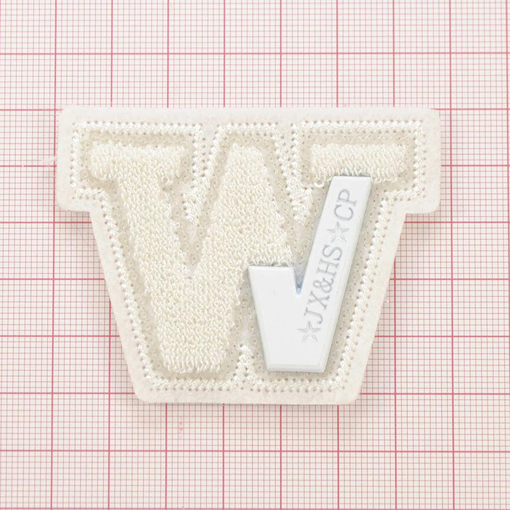 Нашивка махровая пришивная буква W с метал вставкой, 6,7*5,1см, белый, шт