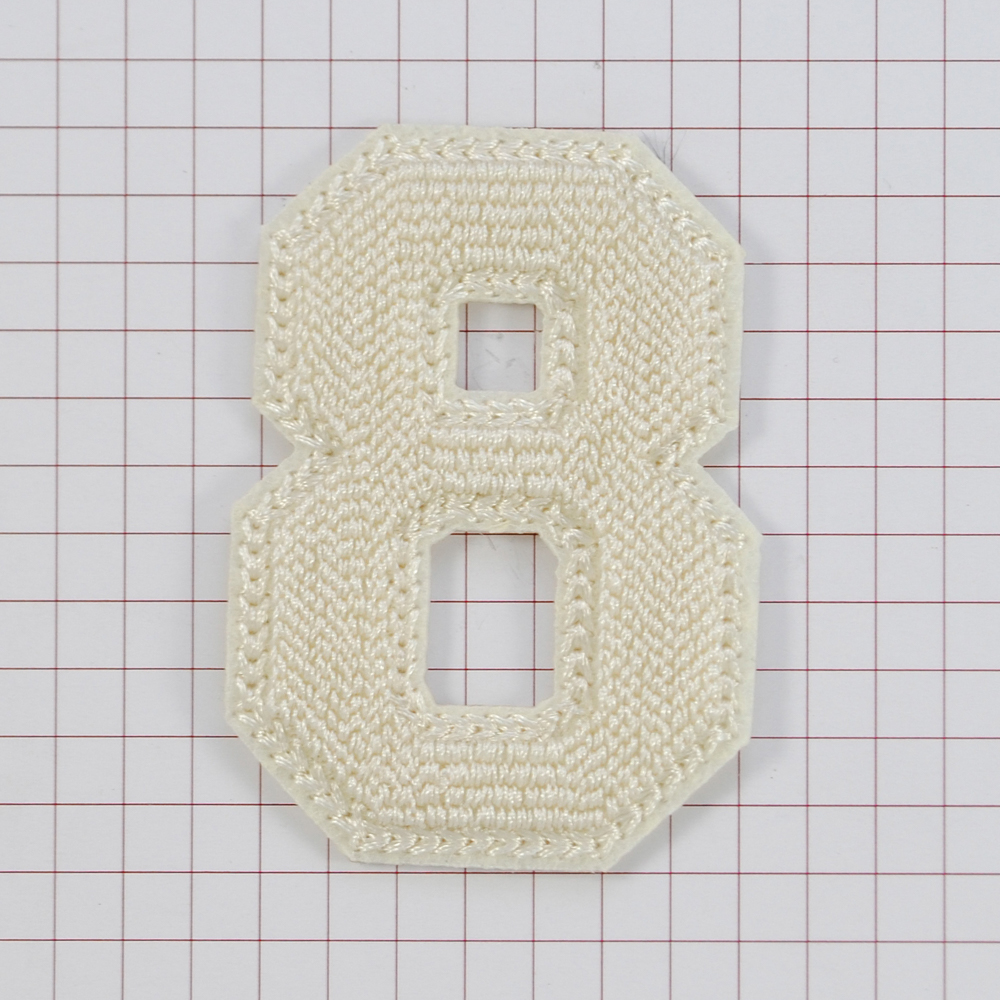 Нашивка махровая пришивная цифра 8, 4*5,5см, белый. шт