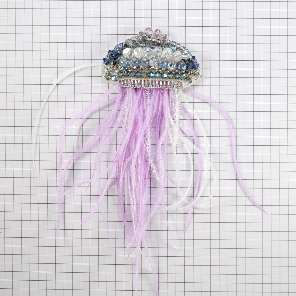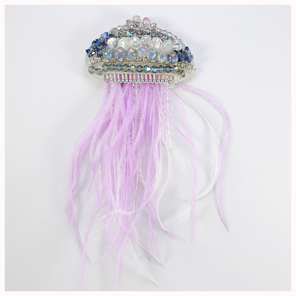 Шеврон декоративный со стразами и перьями Медуза, белый, серый, голубой, шт