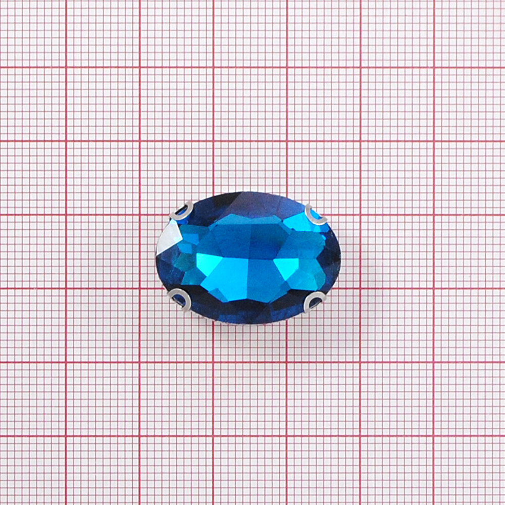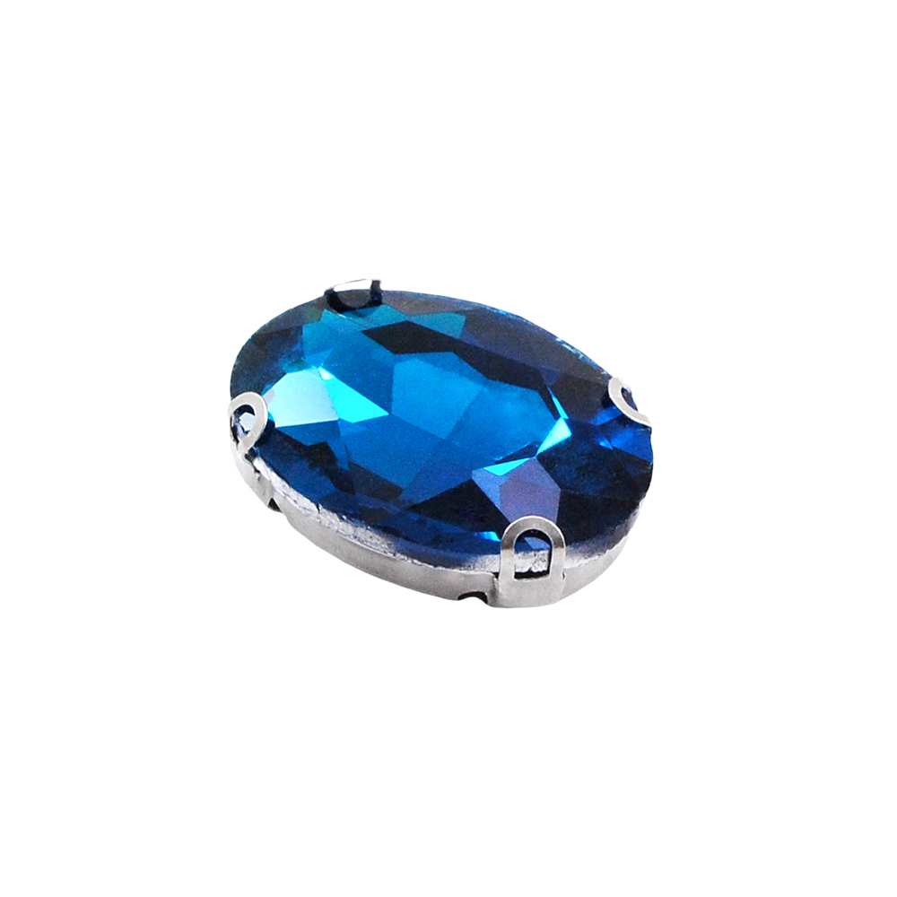 Стразы пришивные в металле, овал, 1,8*2,5см, темно-голубой, шт