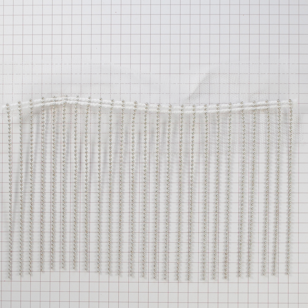 Бахрома из металла на сетке, белая основа, 9см, ярд