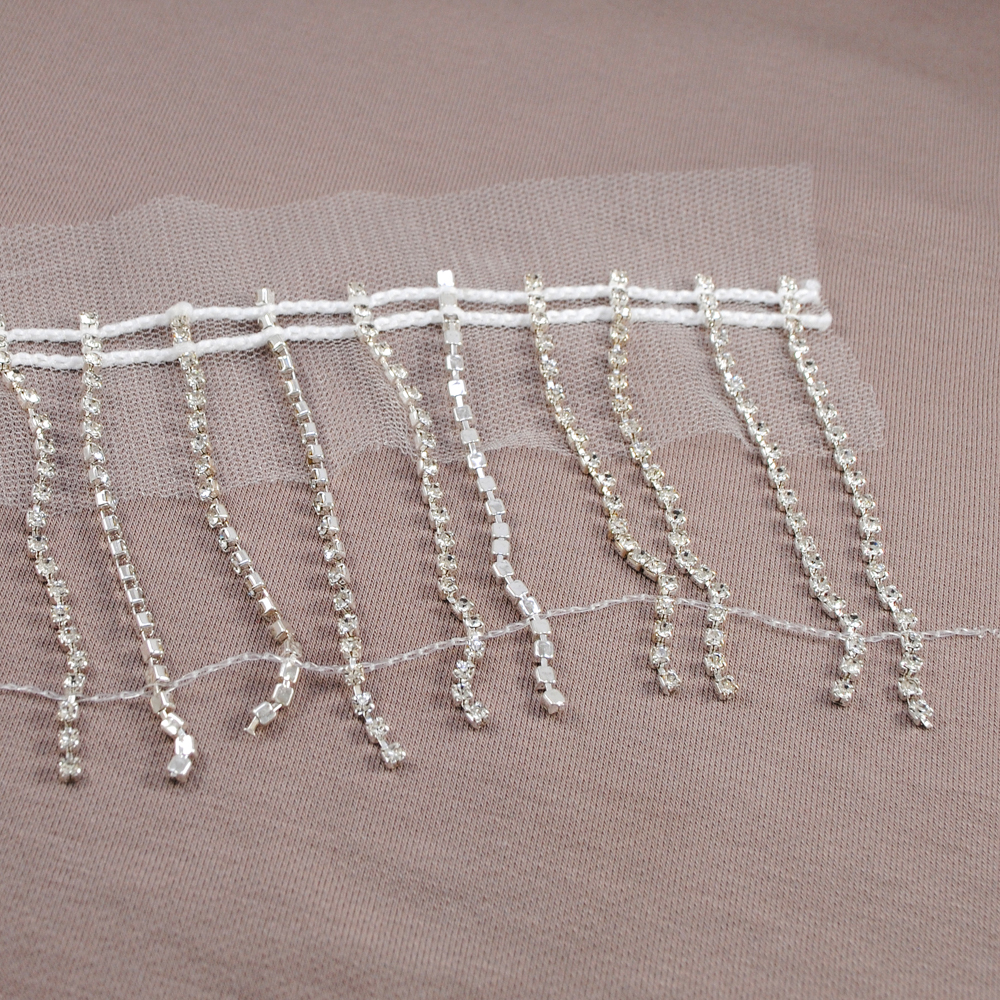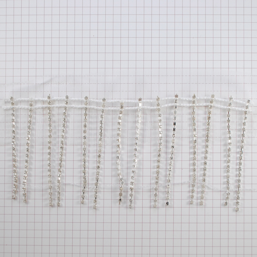 Бахрома из страз на сетке, белая основа, никель, бел.камни, 7см, ярд