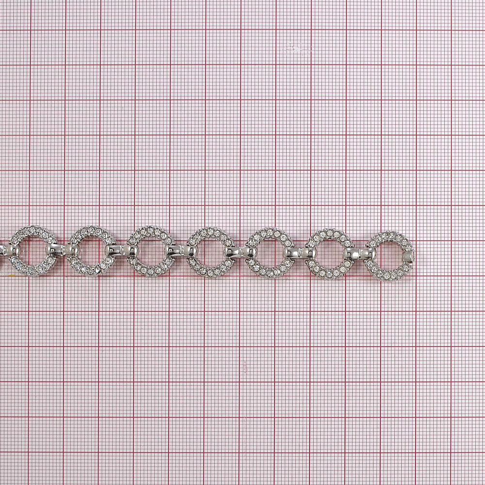 Тесьма стразы Браслет, 1,5см, белый, серебро, ярд