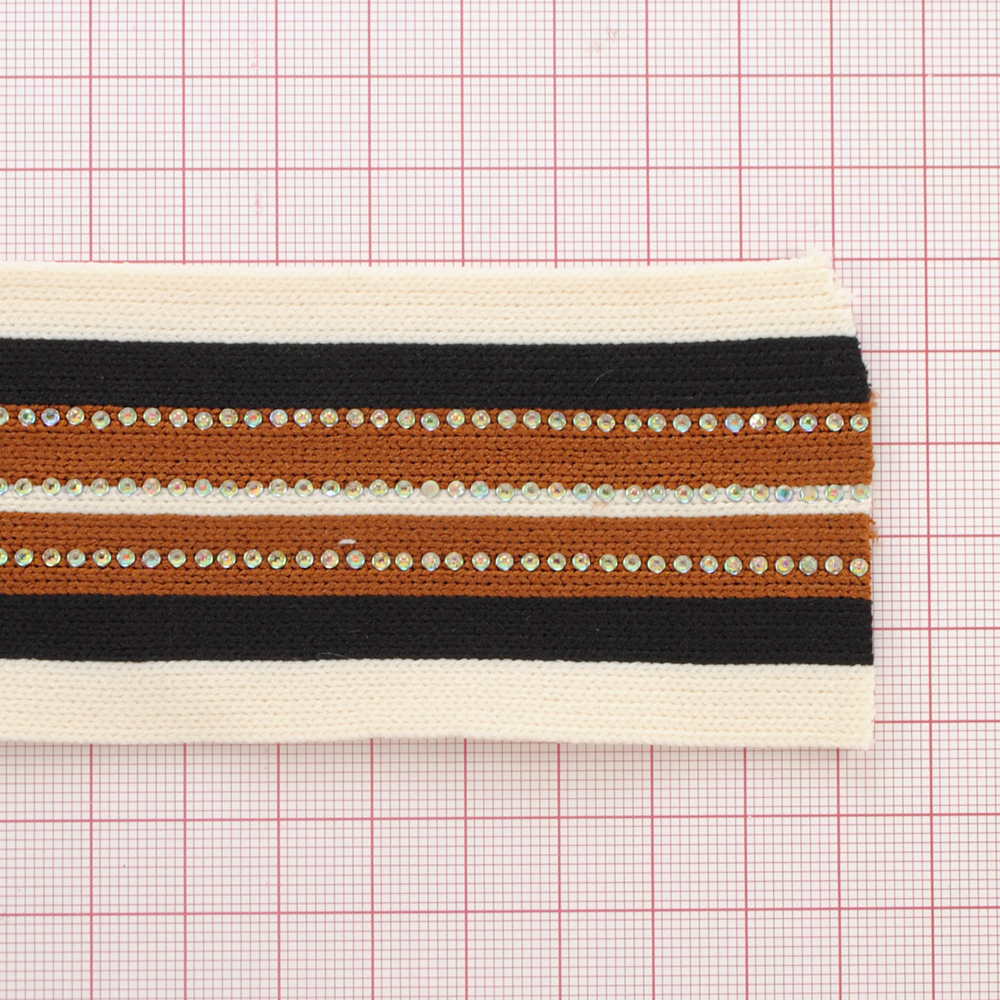 Тесьма лампасная со стразами Полосы, 5см, черный, белый, коричневый, ярд