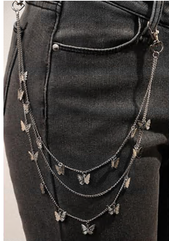 Цепь-декор для брюк на карабинах Бабочки в три ряда, никель, шт
