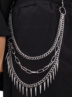 Цепь-декор для брюк на карабинах с подвесками Шипы, никель, шт