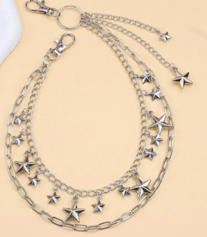 Цепь-декор для брюк на карабинах с подвесками Звезды, никель, шт