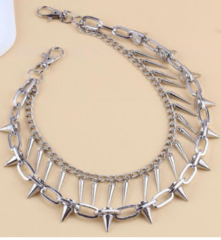 Цепь-декор для брюк на карабинах с шипами в два ряда, никель, шт