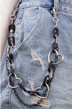 Цепь-декор для брюк на карабинах Сердца, никель, черный, шт