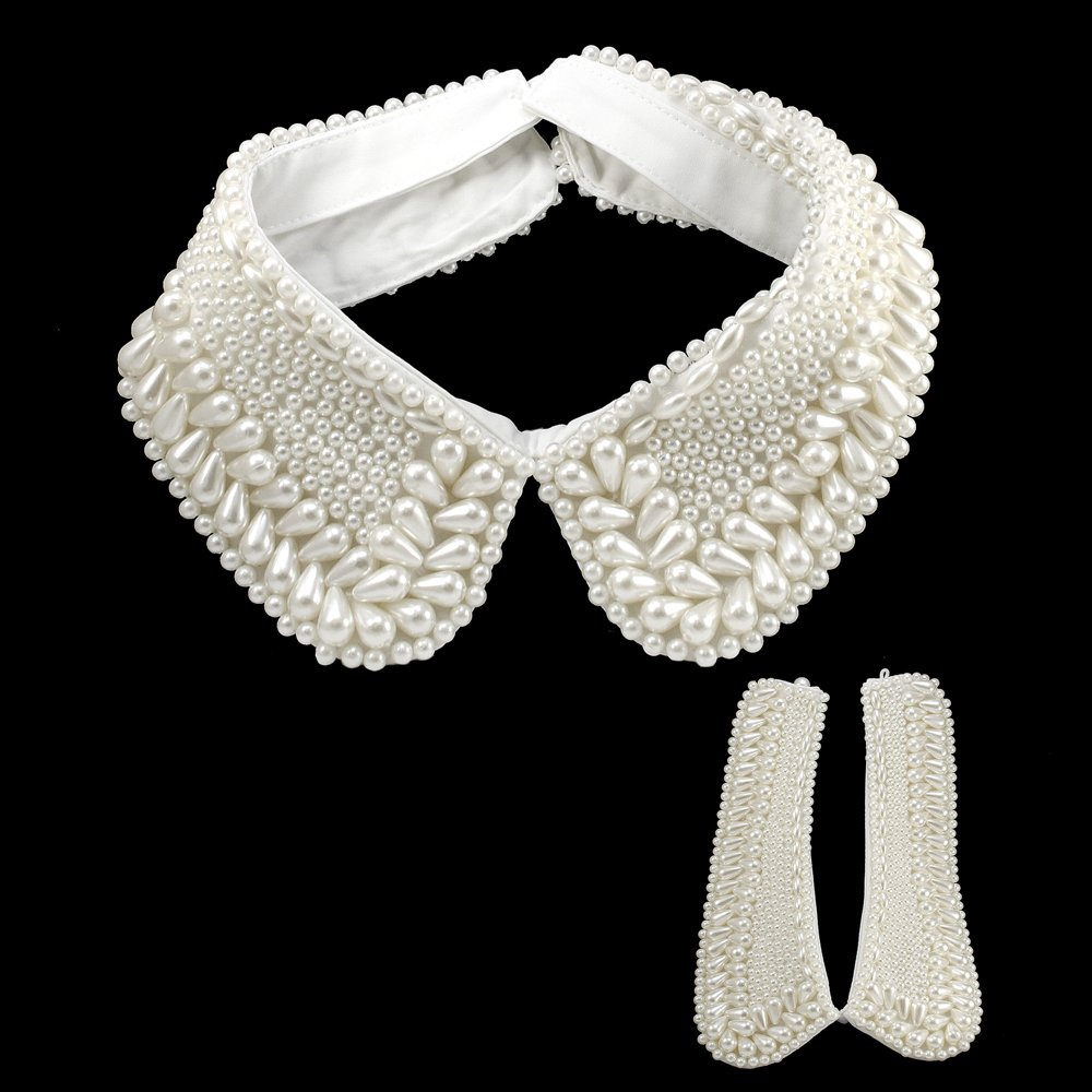 Воротник декор, 44*8см, бусины, белый, шт