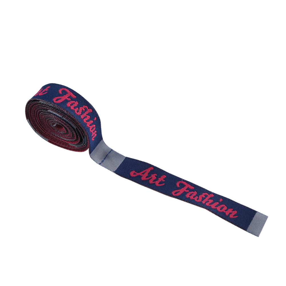 Этикетка тканевая вышитая Art Fashion №4, 1,2см, синяя, малиновый лого