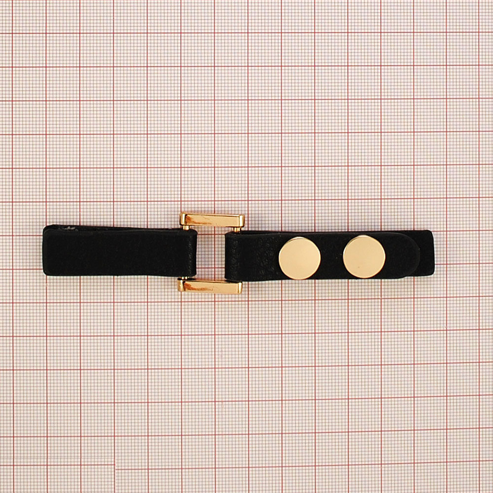 Застежка кожзам с кнопкой , 12,6*1,7, черный кожзам, металл золото