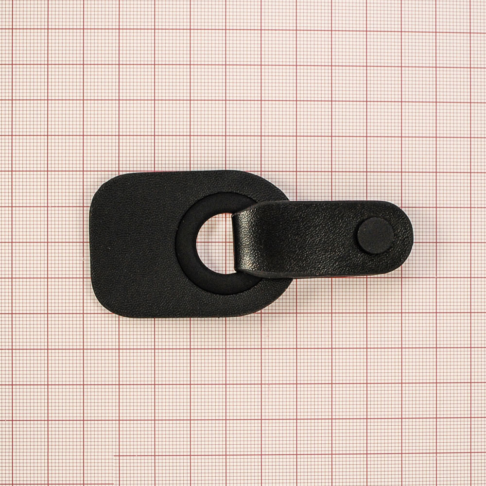 Застежка кожзам с кнопкой , 9*4 см , черный кожзам, черный метал