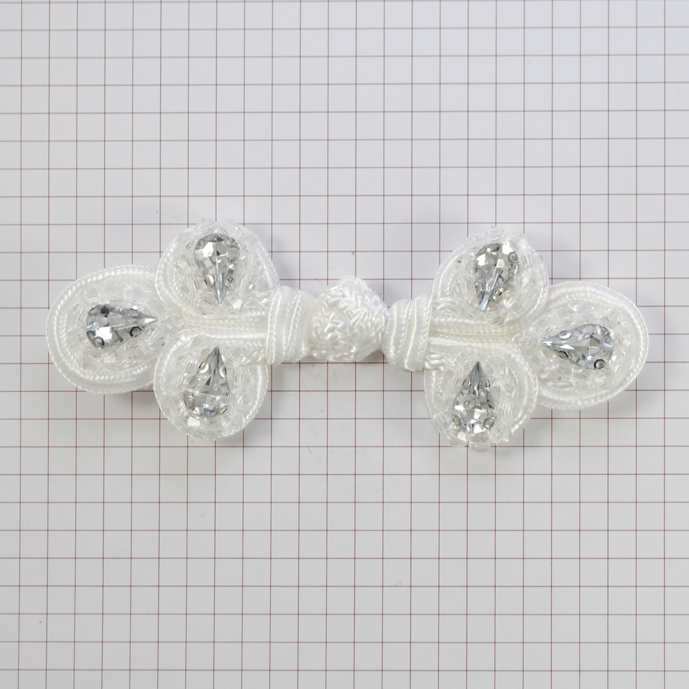 Застежка декор, 11*4см, бисер, белая, белые стразы, шт