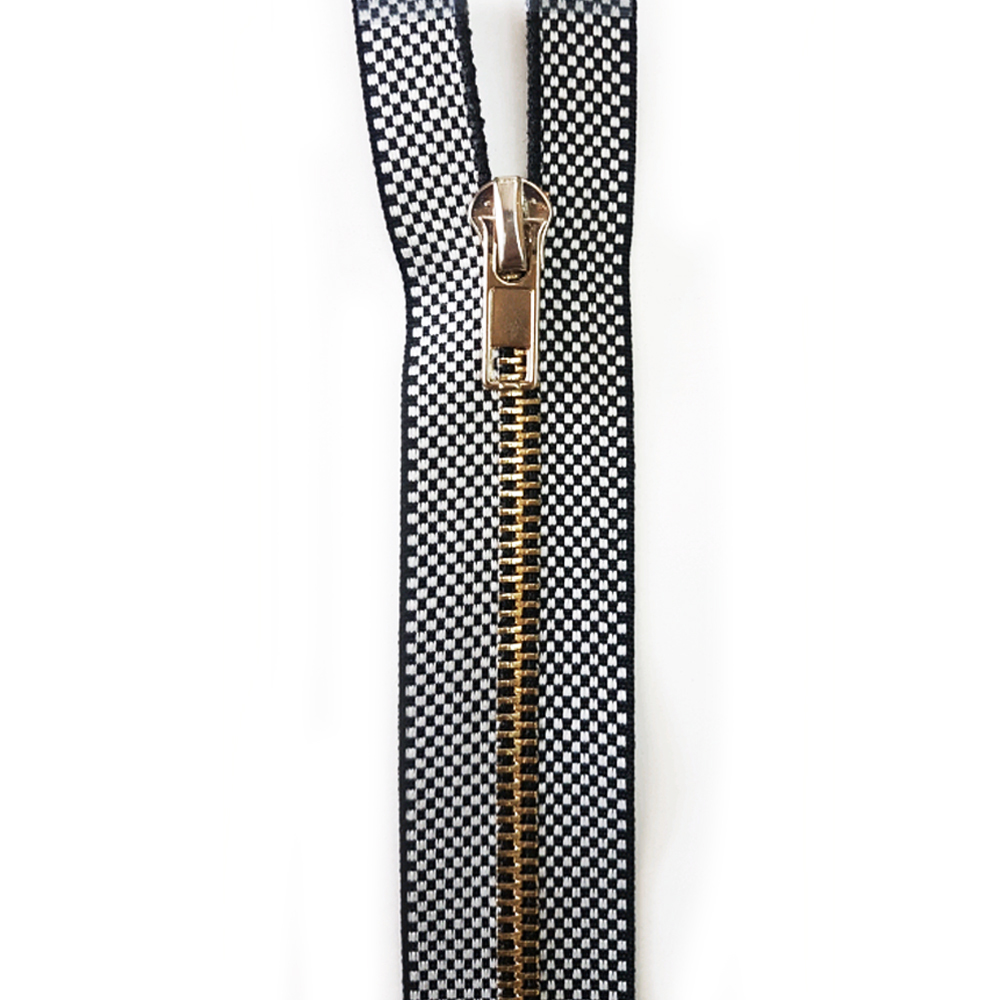 Змейка металлическая №5 100см, О/Е, Gold и черно-белая клетка ткань, двусторонняя, шт