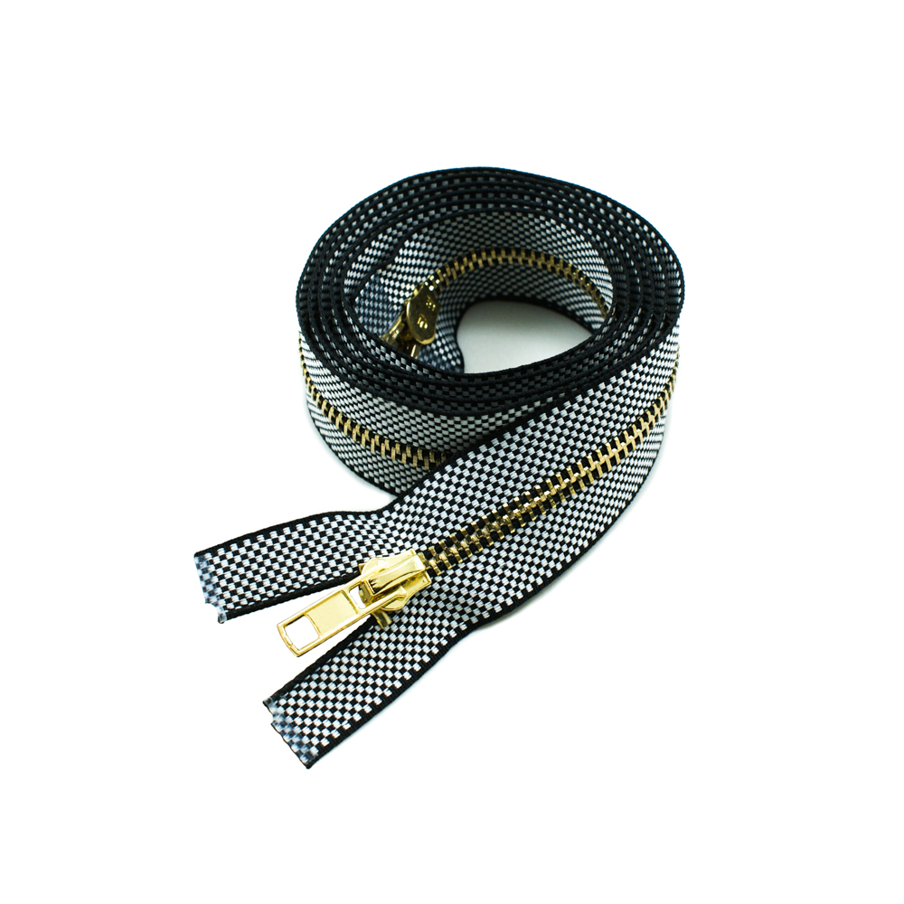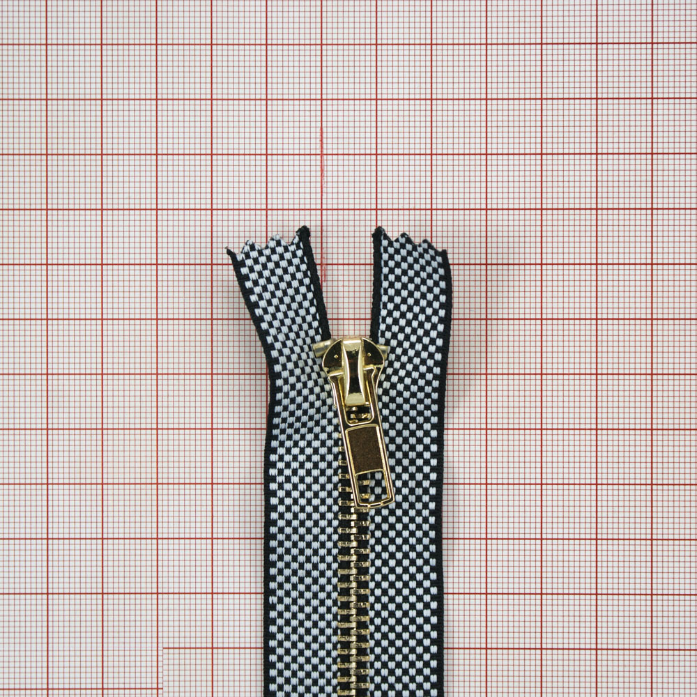 Змейка металлическая №5 120см, О/Е, Gold и черно-белая клетка ткань, двусторонняя, шт