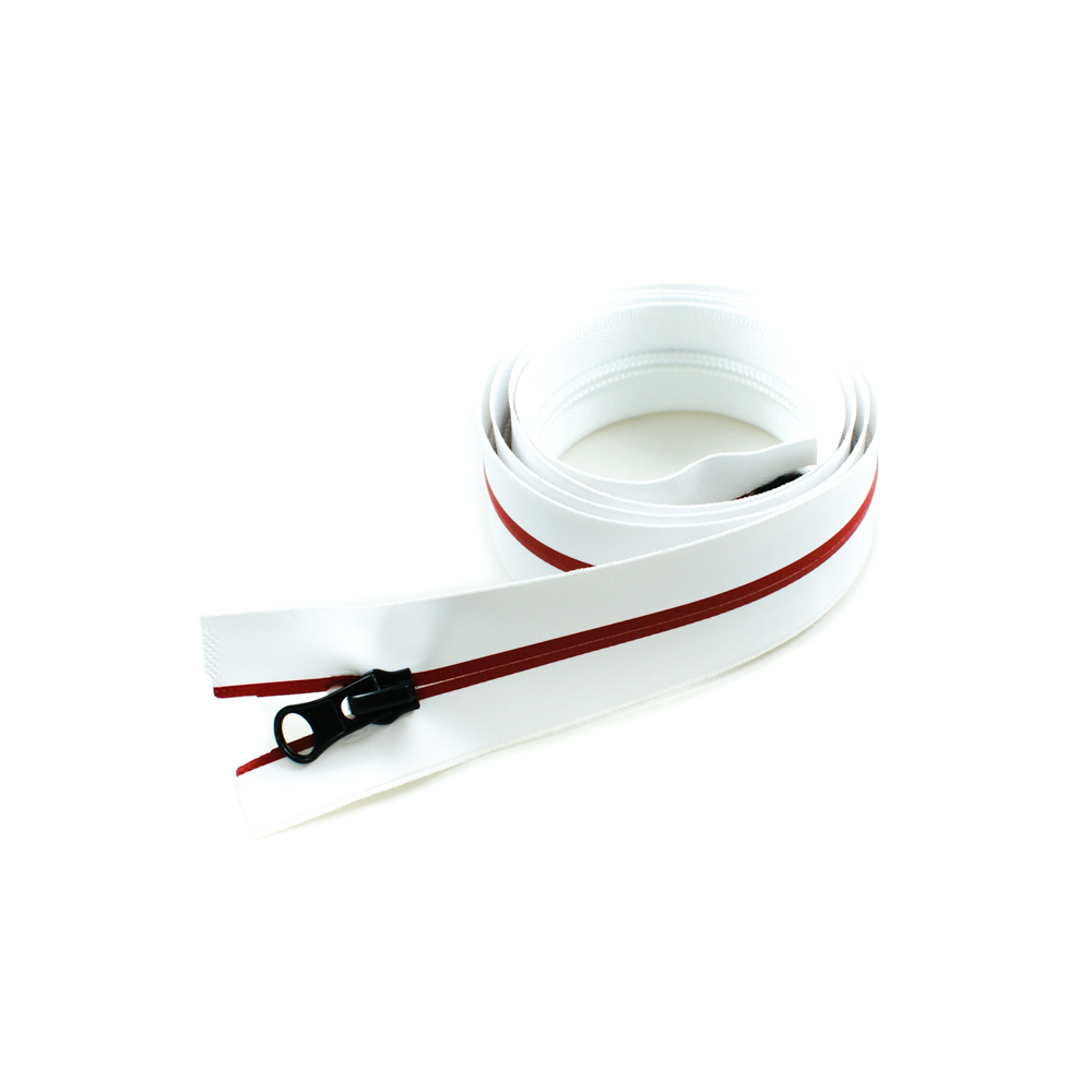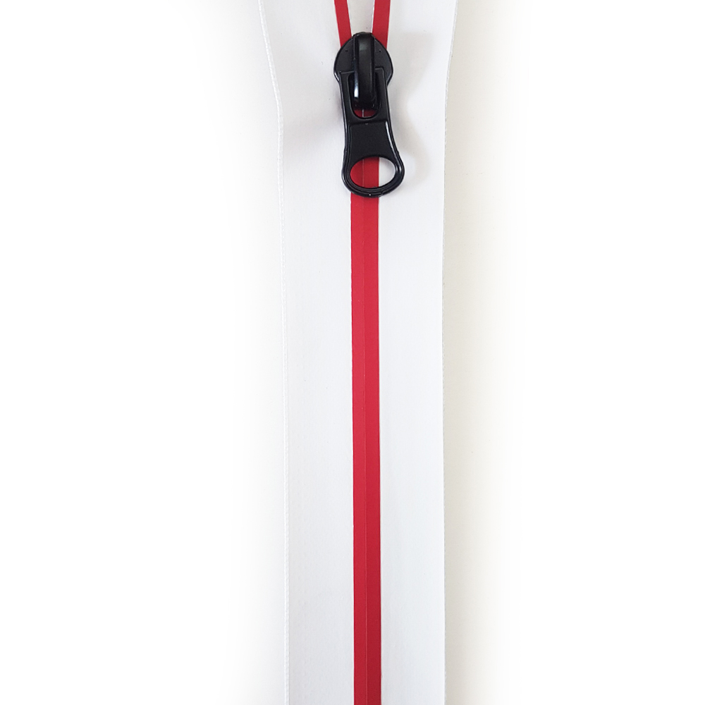 Змейка нейлон водоотталкивающая №5 100см О/Е белая змейка, красная полоса, двусторонняя, шт