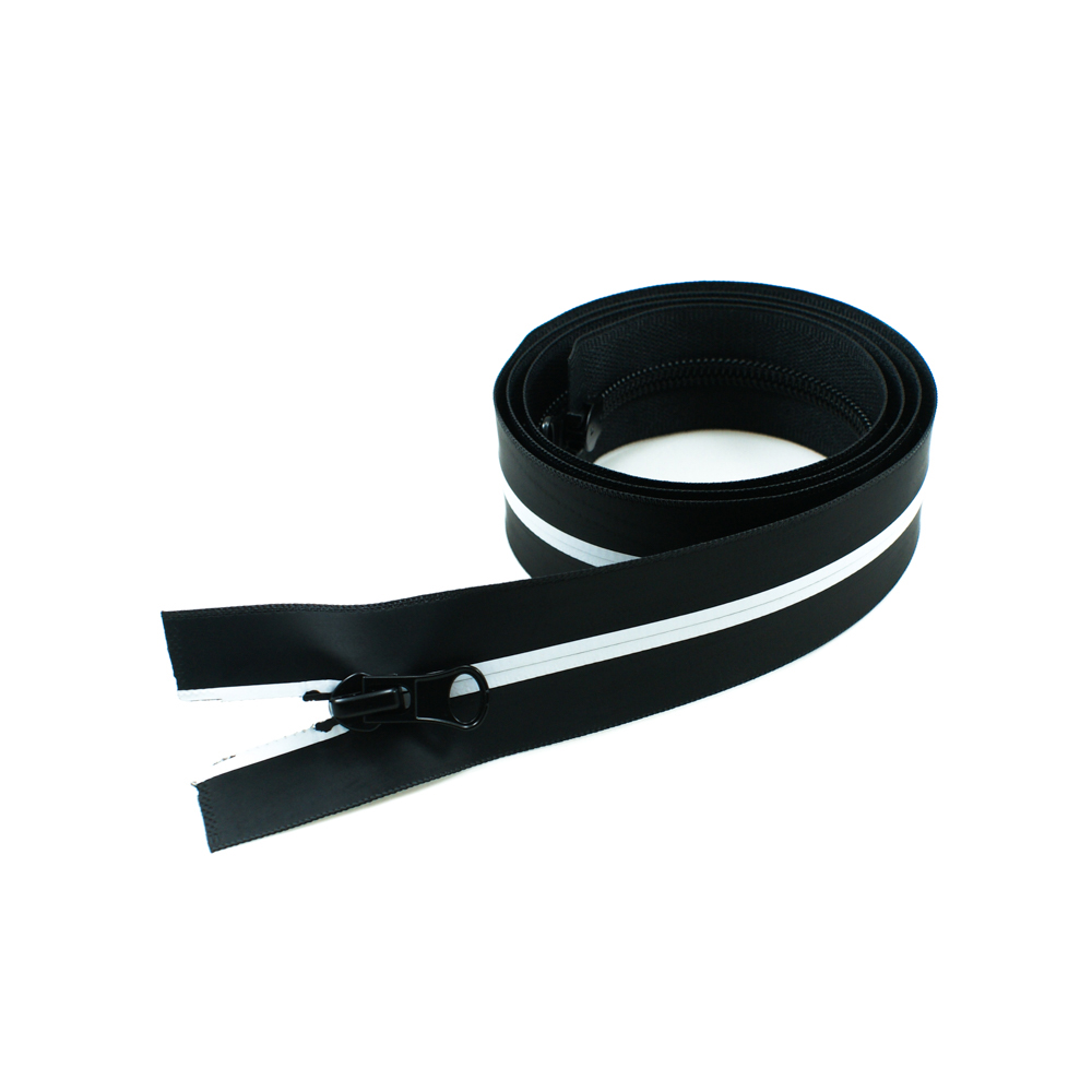 Змейка нейлон водоотталкивающая №5 120см О/Е черная змейка, белая полоса, двусторонняя, шт