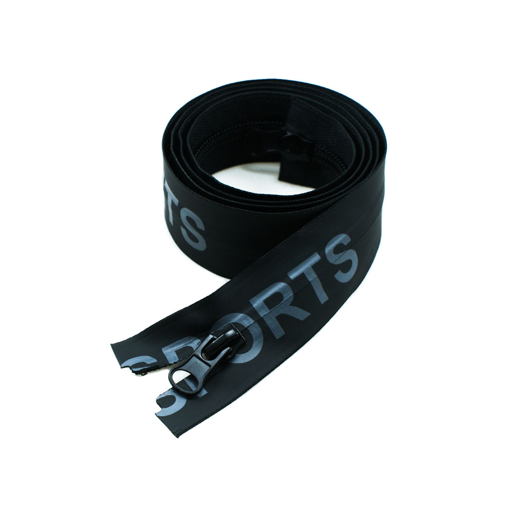 Змейка нейлон водоотталкивающая №5 SPORTS 120см О/Е Black и черная ткань, белый лого, двусторонняя, шт