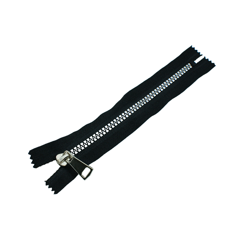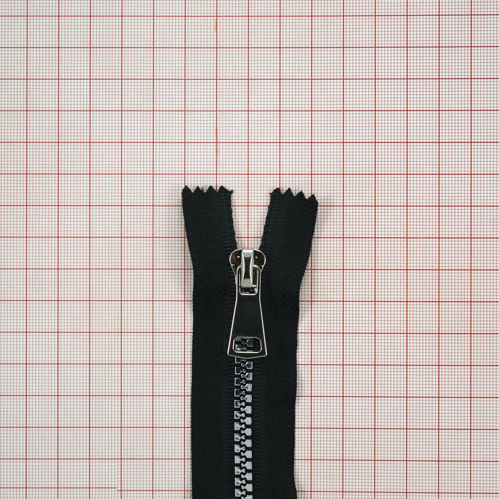 Змейка пластик №5 18см С/Е блестящий никель (металик) и черная ткань, шт