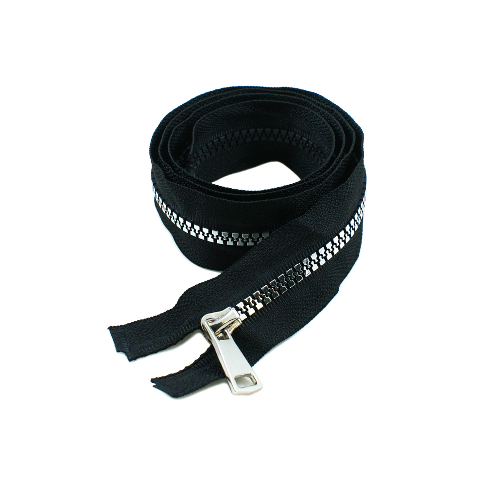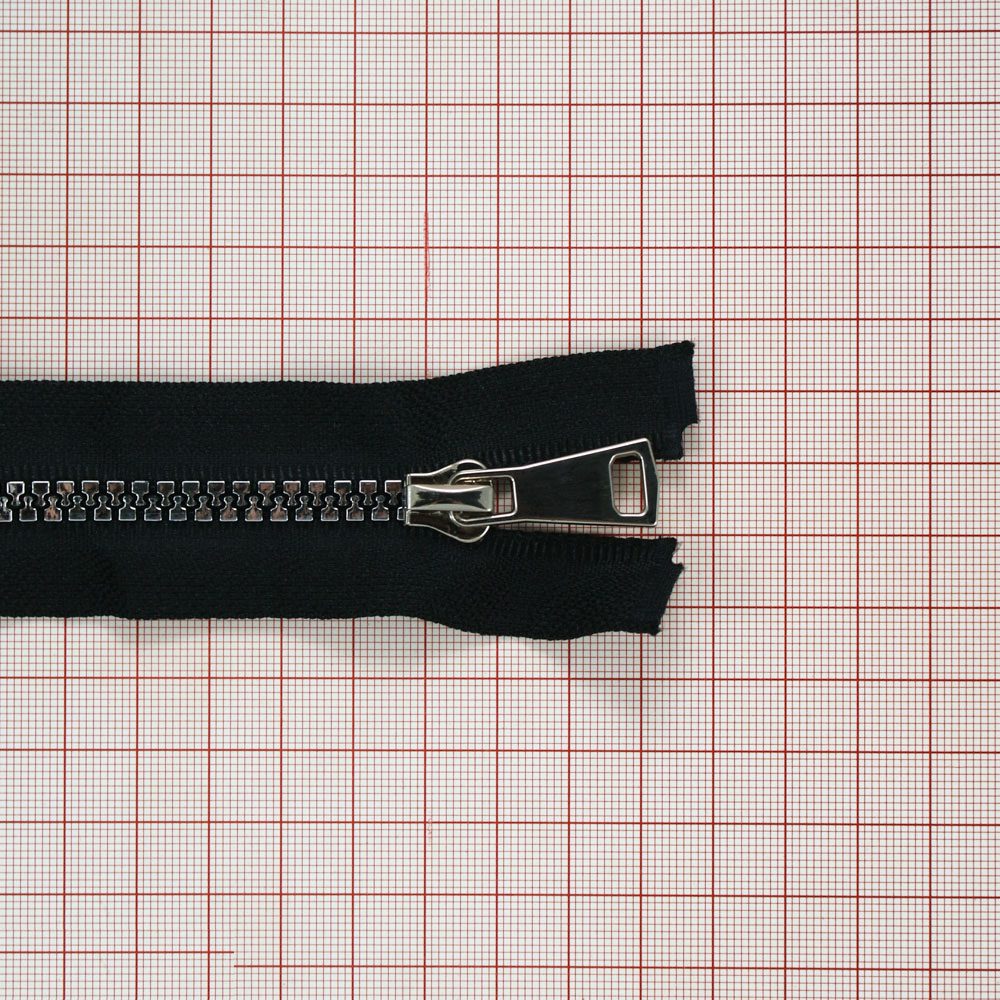 Змейка пластик №5 85см О/Е блестящий никель (металик) и черная ткань, односторонняя, шт